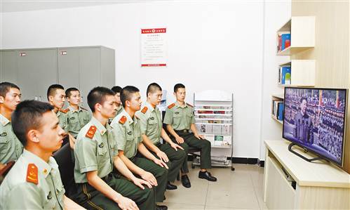 7月23日晚,武警重庆市永川区消防支队特勤中队官兵正在观看大型政论专题片《将改革进行到底》第七集《强军之路》。通讯员 陈仕川 摄