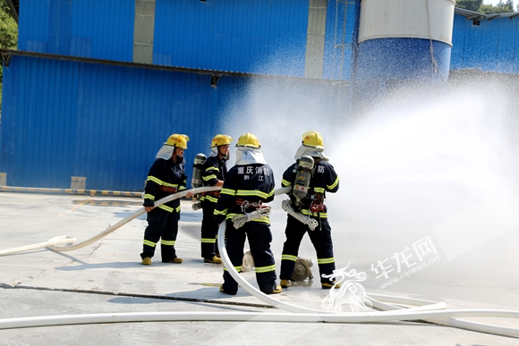 消防队员使用专业水枪对外泄气进行冲洗。 黔江区环境保护局供图 华龙网发