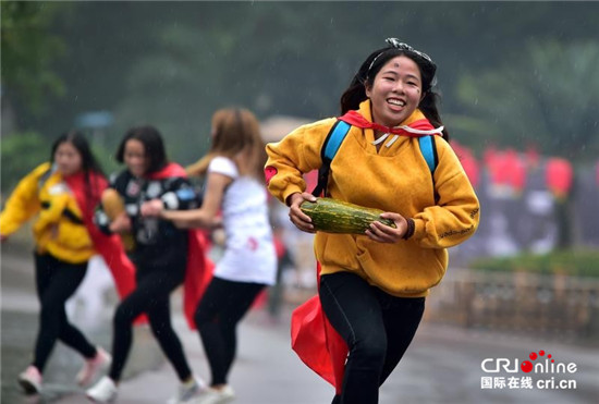 尽管天下着小雨,身披着“红、黄、蓝、绿”4色披风战袍的“南瓜战士”还是义无反顾、坚持不懈。最终“南瓜战士”们相互鼓舞,毫不畏惧,一路斗志斗勇,闯关过卡,冲向终点。