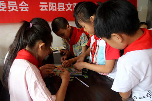 孩子们在“七彩假期”课堂上拼地图。通讯员 郑红均 摄