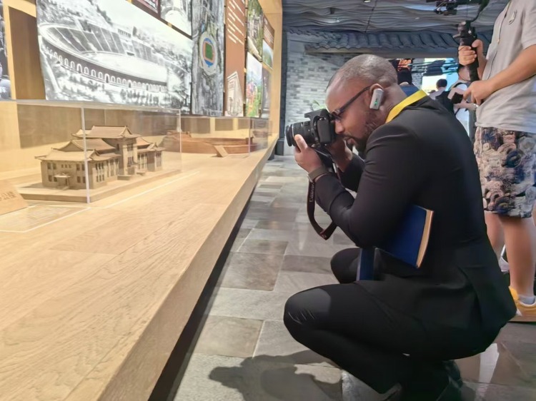走进历史人文展区,悠久的重庆历史引起了乌干达《新愿景报》记者巴尔·万尼卡的注意,他特地为展区里每一个古建筑模型单独拍摄了特写图片。