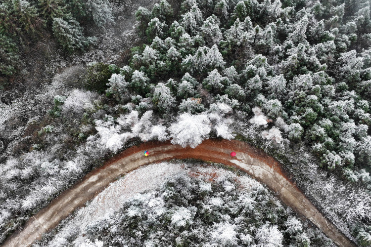 ▲11月18日,黔江区国家森林公园,游客在灰千梁子景区赏雪。特约摄影 杨敏
