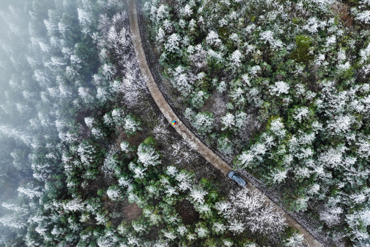 ▲2025年11月18日,黔江区国家森林公园,游客在灰千梁子景区赏雪。特约摄影 杨敏