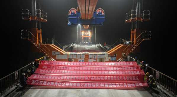 中铁三局渝万高铁站前3标箱梁架设任务圆满完成
