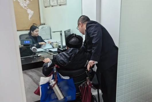 11月初,一位拄着拐杖、乘坐轮椅的老人独自前往中国银行璧山绿岛支行营业大厅办理业务。网点工作人员当即协调厅堂秩序,为老人开通绿色通道,提供全程陪同引导服务。从柜台前细致沟通、耐心协助填写单据,到业务办结后答疑解惑,并将老人送至网点门口安全区域,网点工作人员始终以专业温暖的态度,将细致服务融入每一个环节。