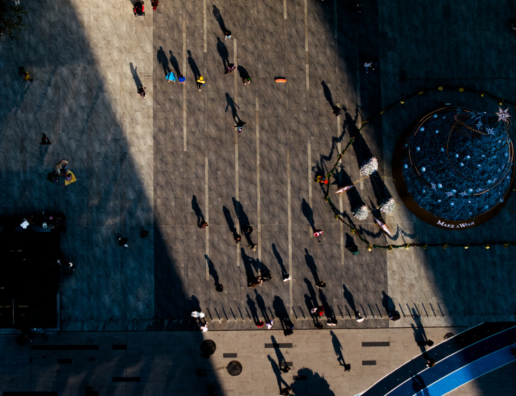 ▲11月28日,南坪步行街,市民在暖阳下行走。特约摄影 郭旭