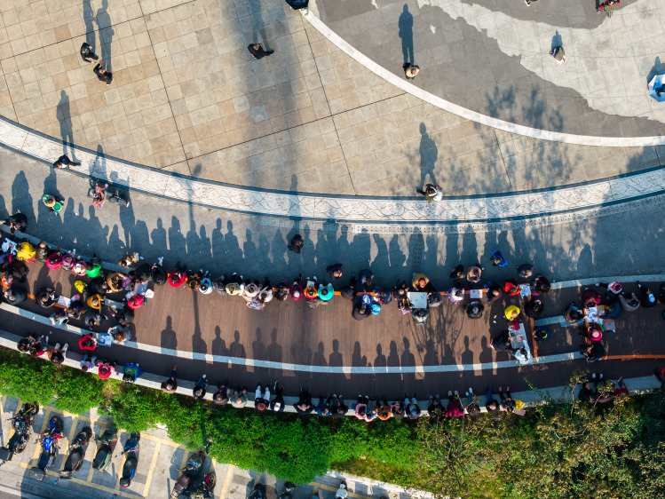 ▲11月28日,南滨路东原1891广场,市民在暖阳下拍照打卡。特约摄影 郭旭