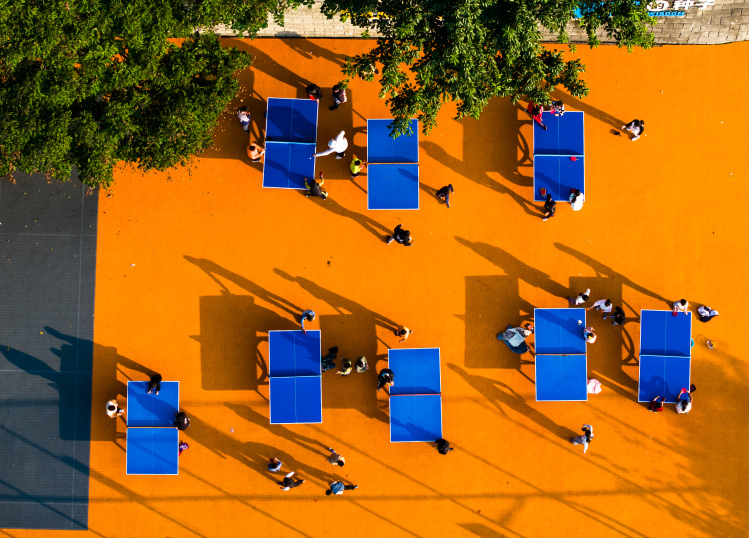 ▲11月28日,南岸区龙门浩隆平小学,同学们在冬日暖阳下打乒乓球,地上折射出他们长长的身影。特约摄影 郭旭