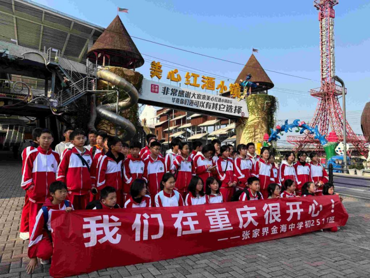近年来,美心红酒小镇景区依托“生态+文旅”优势,积极打造“水陆空”立体研学体系。学生们可在游乐园了解机械运维原理,也可在小镇了解三峡库区175米水位线现状。景区还将景观建筑与工业知识结合,比如通过悬挑汽车装置讲解力学原理,用倒立汽车模型启发创新思维,这种沉浸式学习比课堂更生动。