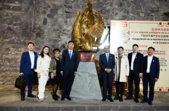 文物活化,让历史“飞”向世界。丰都县城市雕塑“凤鸣平都”在瓜纳华托市中心正式落成,其原型为三峡博物馆镇馆之宝巴渝神鸟。丰都将这一历史文物转化为现代城市雕塑,完整保留“吉祥、平安、富贵、奋飞”的核心寓意。来自东方的凤凰形象,为瓜纳华托市市民带来了关于死亡与重生的另一种文化表达,搭建起跨越山海的跨文化艺术对话桥梁。