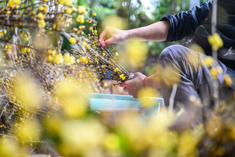 北碚区静观镇素心村,工作人员正在将蜡梅花打包发货。首席记者 龙帆 摄