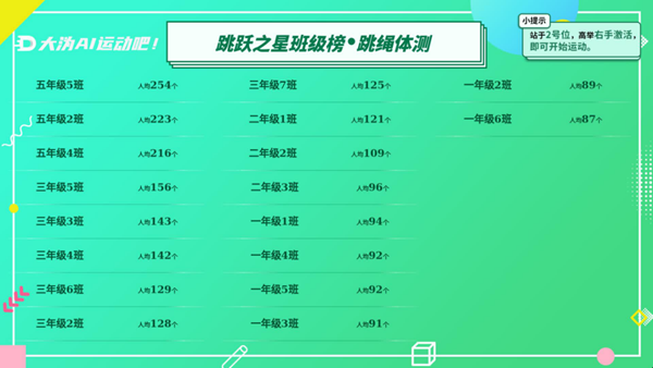 “AI运动吧”实时榜单 供图 重庆市两江新区行远小学校