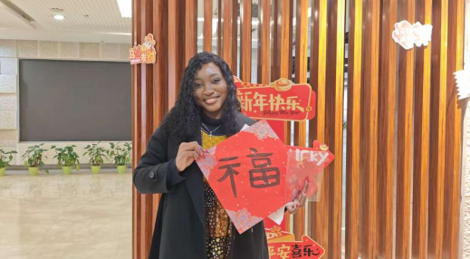 书法体验区最是热闹,外国友人们握着毛笔,在宣纸上一笔一画临摹“福”“春”“新年快乐”等汉字,虽然笔触稚嫩,却饱含诚意。来自哈萨克斯坦的尼克还特意写下“新春安康”四个字,笑着说:“我要把这个当作新年礼物,送给我的中国朋友。”