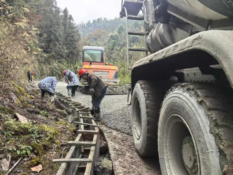 2月1日,在重庆市秀山县钟灵镇钟灵水库库区,十余名工人忙碌于道路硬化与边沟整治,施工现场井然有序。