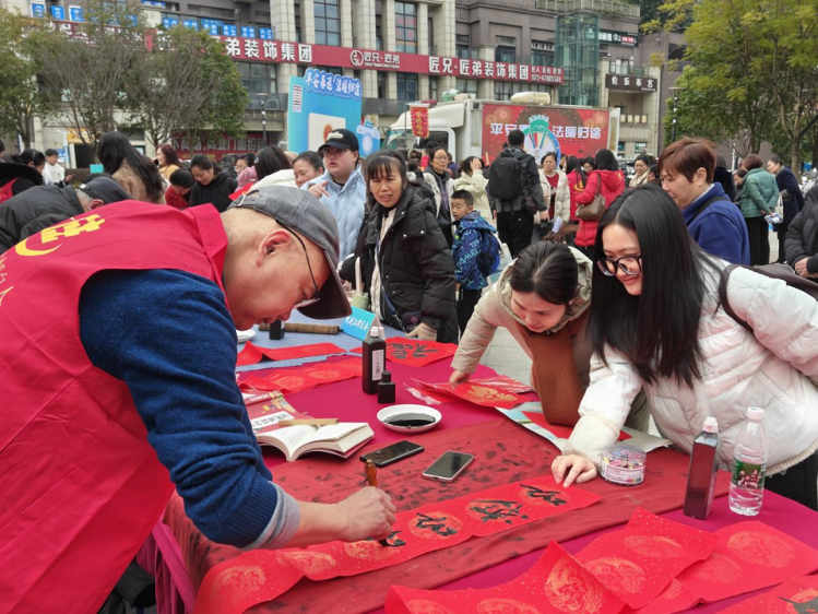 在集中咨询区,各部门骨干组成普法团队,围绕道路交通安全、出行权益、农民工劳动保障等热点问题,为往来旅客提供“面对面”答疑服务,并发放普法宣传资料,实现法律服务精准触达。为提升普法趣味性和参与度,活动现场设置“法治转转乐”“法治九宫格”等互动游戏,旅客参与游戏答题即可领取法治宣传品。在法治文化融合区,书法爱好者现场挥毫书写法治春联赠予旅客,让法治理念随祝福传递。