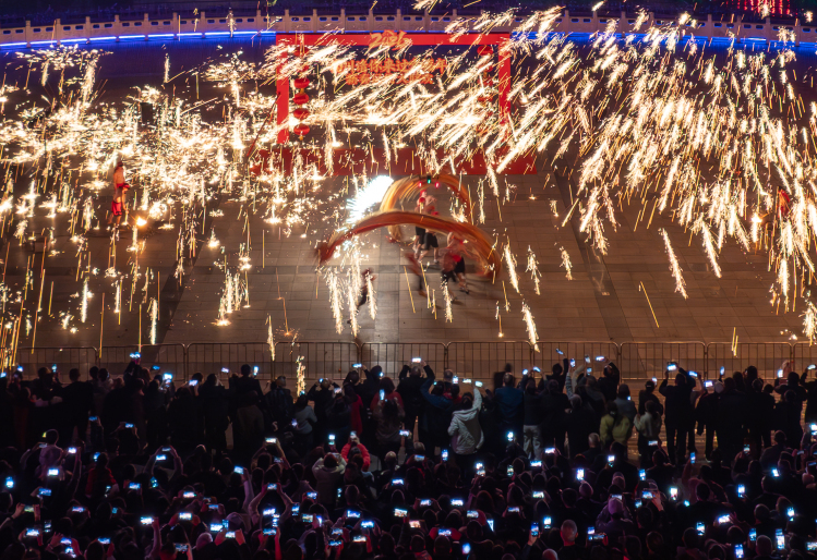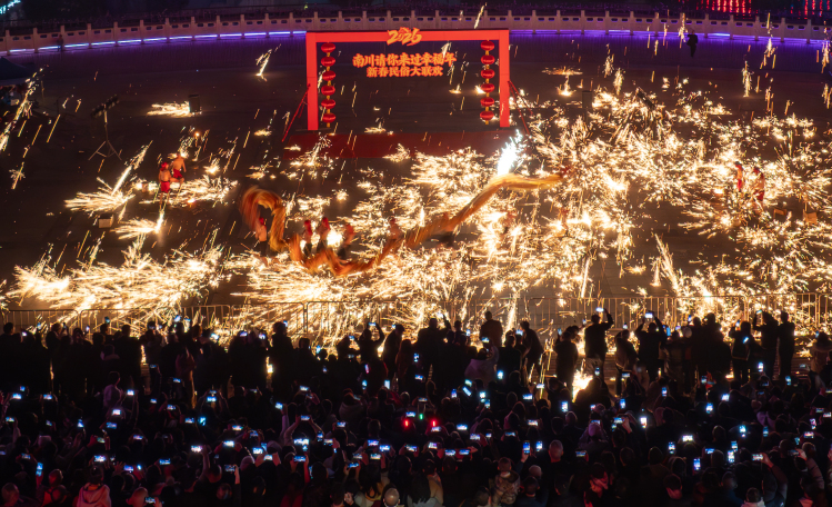 ▲2026年2月22日晚,南川区市民广场,精彩的火龙表演吸引市民游客纷纷驻足拍照欣赏。特约摄影 罗川