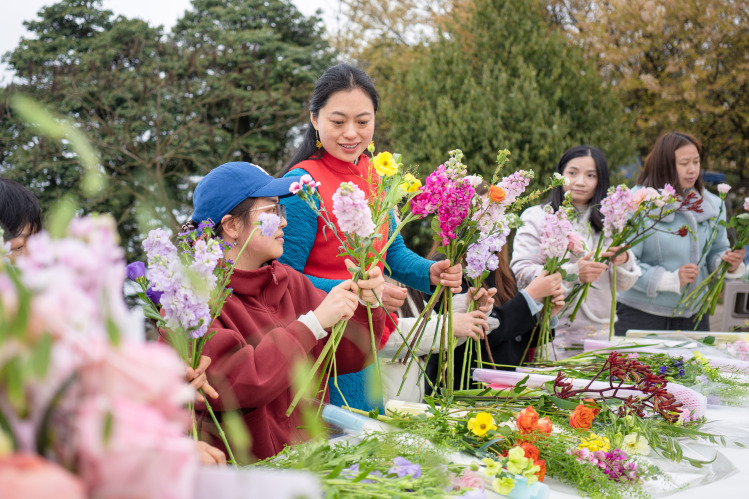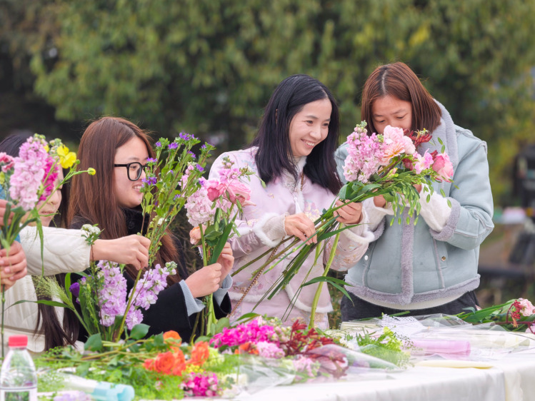 ▲2月27日,北碚区大盛镇云龟山景区,市民在进行插花比赛。记者 李雨恒 摄