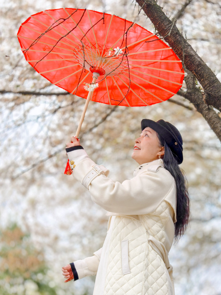 ▲2月27日,北碚区大盛镇云龟山景区,市民在樱花树下打卡拍照。记者 李雨恒 摄