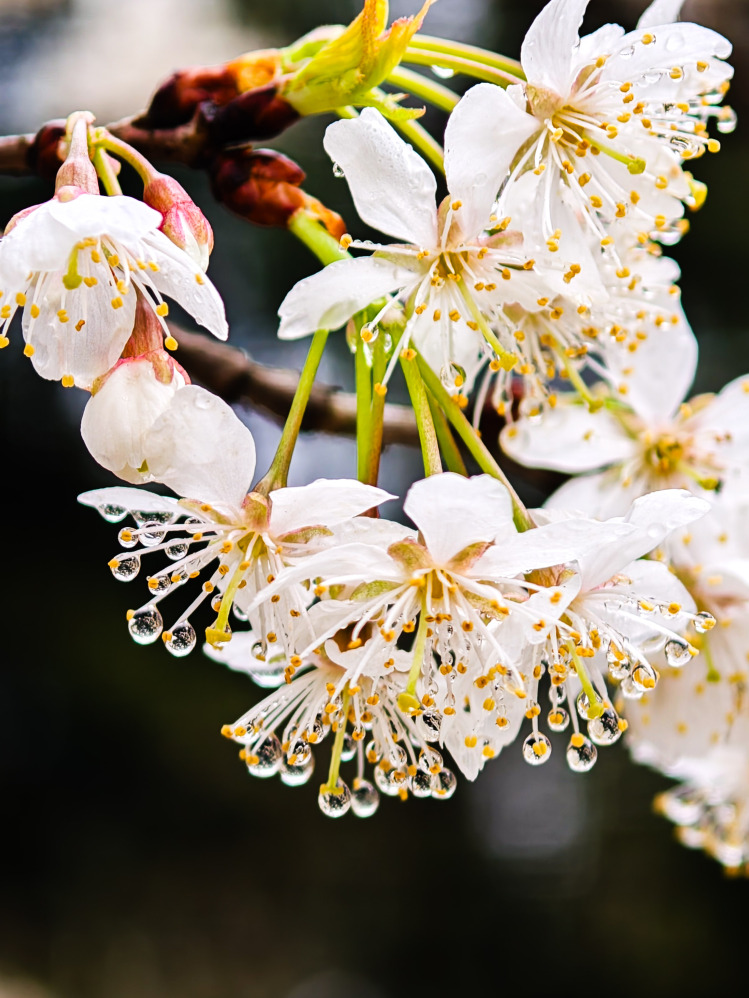 ▲2月27日,北碚区大盛镇云龟山景区,樱花花瓣上的露珠晶莹剔透。记者 李雨恒 摄