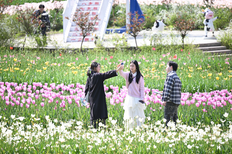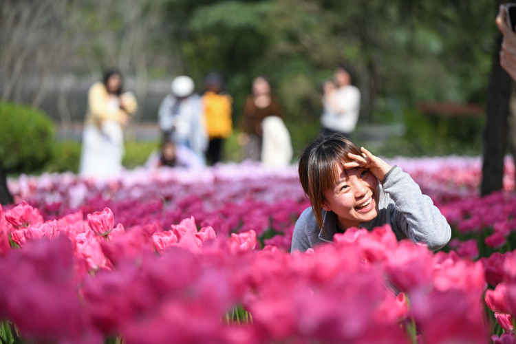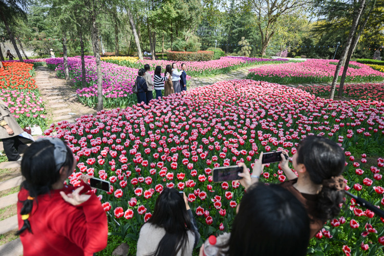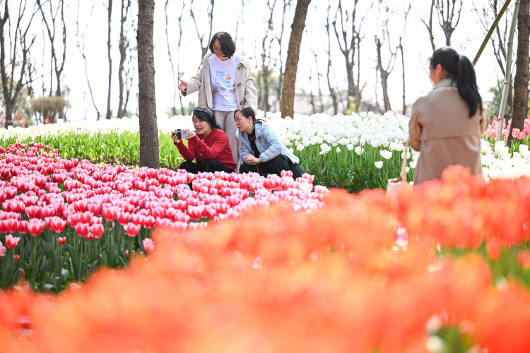 原标题:图片新闻|长寿湖郁金香盛放 游人如织醉春光