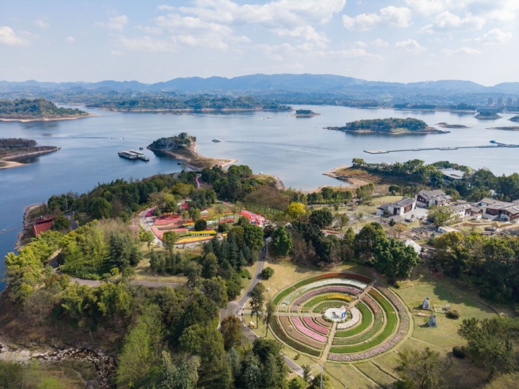 ▲2026年3月4日,长寿湖景区,游客在此打卡。记者 谢智强 摄