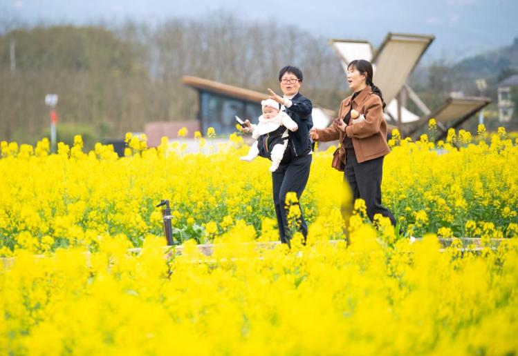 近日,重庆市璧山区七塘镇将军村莲花穴的油菜花田进入盛花期,吸引大批游客前来踏青打卡。